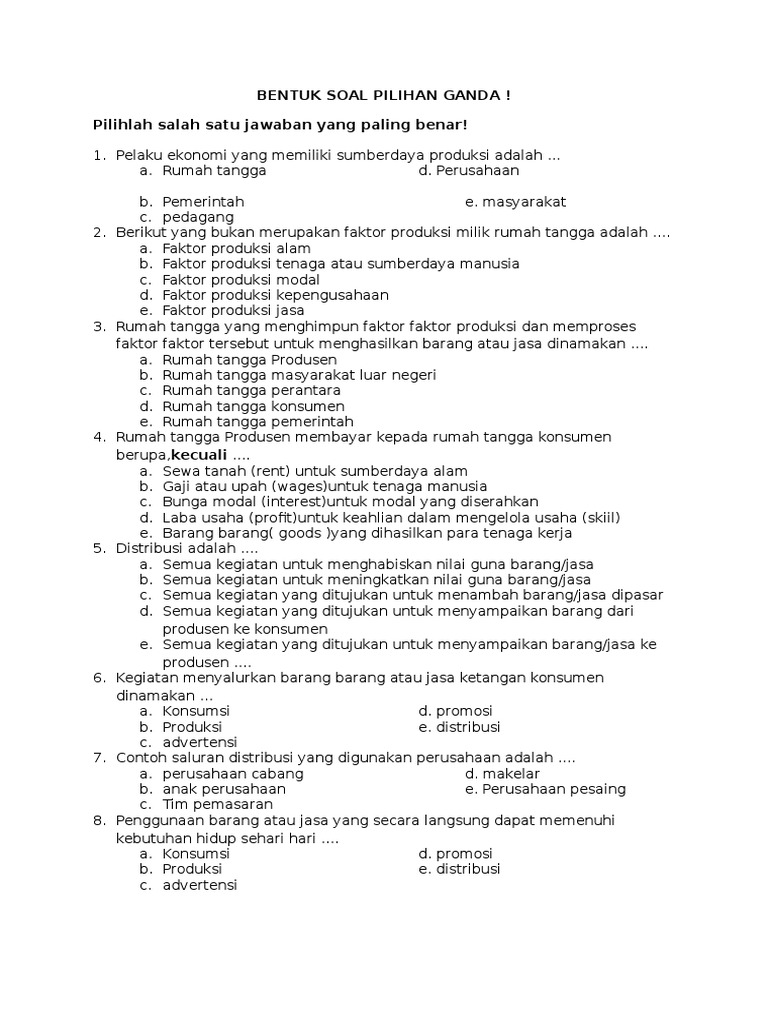 Lengkap 70 Soal Ujian Pilihan Ganda Dan Kunci Jawaban Ekonomi Dan Bisnis Tentang Pasar Modal Indonesia Berbagiruang Com from berbagiruang.com Bisnis tidak bisa dilepaskan dari aktifitas produksi, pembelian, penjualan maupun pertukaran barang dan jasa dimana kegiatan tersebut melibatkan orang secara individu maupun perusahaan. Ada 40 butir soal pat (20 soal pilihan ganda + 20 essay/uraian), dan materi ini diambil dari materi bab 1 sampai dengan bab 3. Scopri ricette, idee per la casa, consigli di stile e altre idee da provare. Bitcoin adalah sebuah uang elektronik yang dibuat pada tahun 2009 oleh satoshi nakamoto. Jan 26, 2021 · berikut, soal ekonomi kelas 10 semester ganjil kurikulum 2013 (k13) dan kunci jawabannya untuk siswa sma/ma. Apr 23, 2019 · contoh sambutan ketua panitia di setiap acara yang sedang kalian adakan pasti ada sambutan sambutannya begitu juga dengan sambutan ketua panitia yang menyelenggarakan jika anda baru pertama kali mengadakan acara dan harus mengisi sambutan sebagai ketua panitia tentu stres kecil nerves gugup dan lain sebagainya akan bercampur aduk. Oct 23, 2020 · materi lembaga pembiayaan : Istilah ekonomi berasal dari bahasa yunani, oikos (rumah tangga) dan nomos (aturan), adapun dalam bahasa inggrisnya kita mengenal dengan istilah….